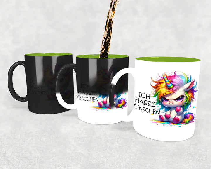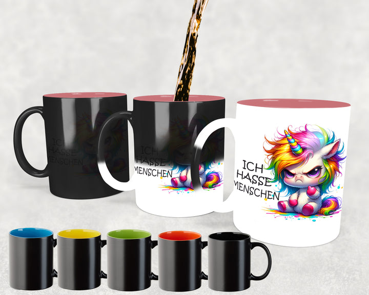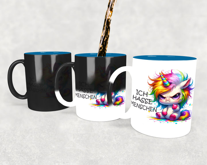 Cute Animal Einhorn Emmy "Ich hasse Menschen" MAGIC Kaffeebecher / Teetasse