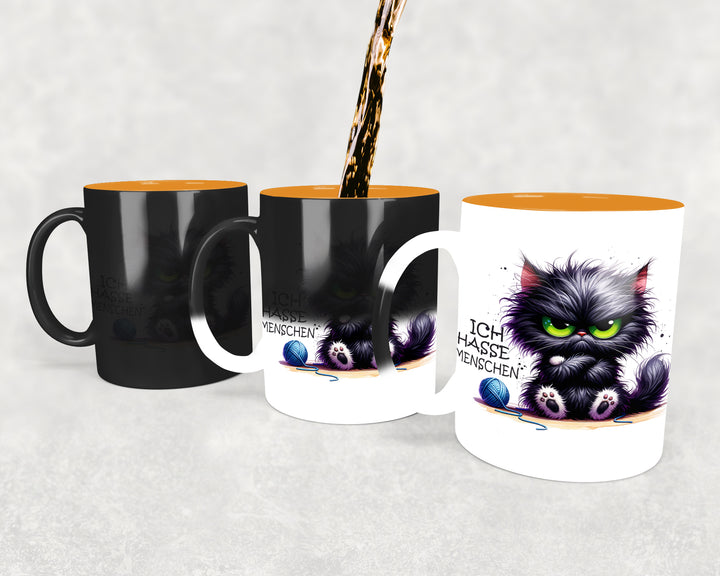 Cute Animal Katze Mia "Ich hasse Menschen" MAGIC Kaffeebecher / Teetasse