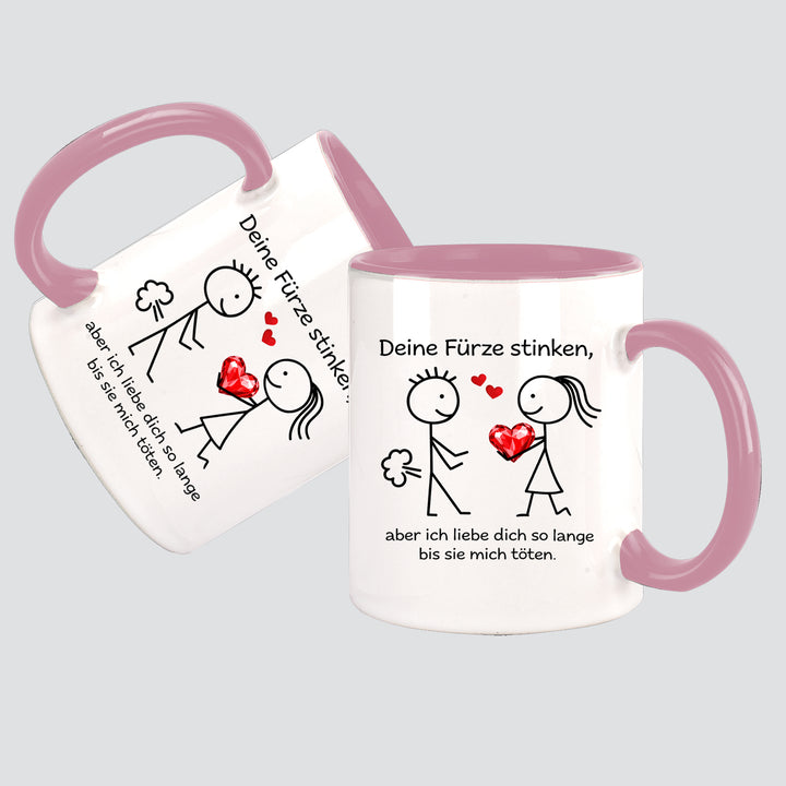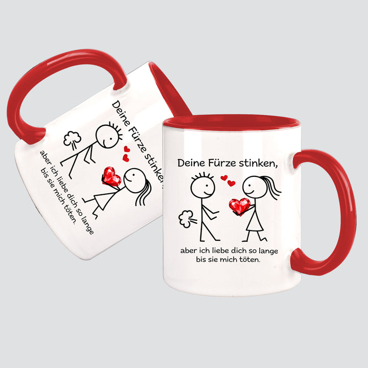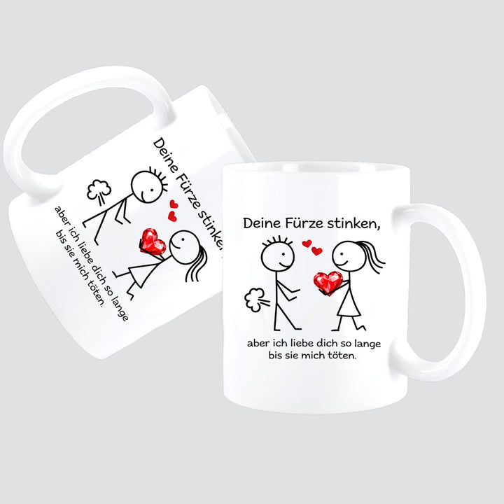 Deine Fürze stinken, aber ich liebe Dich ... Kissen + Tasse Strichfiguren