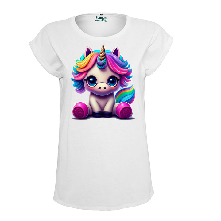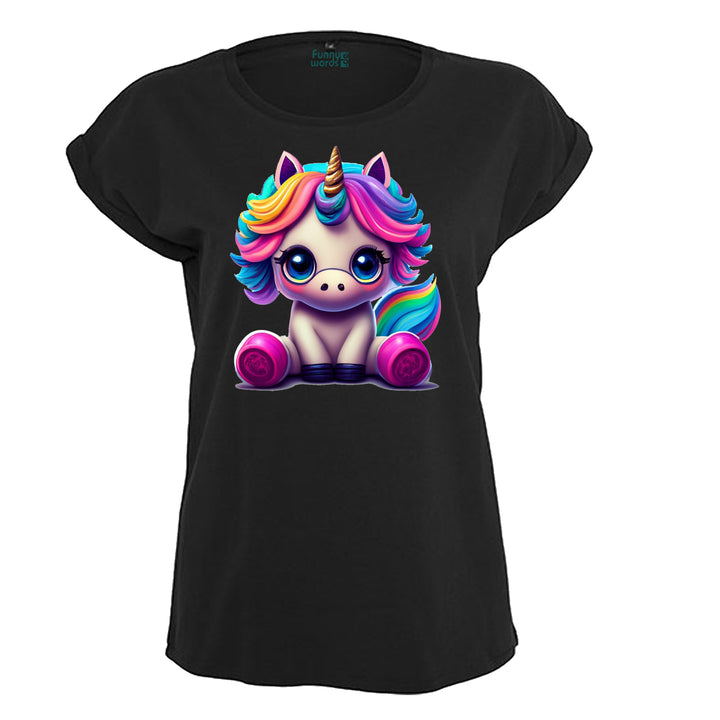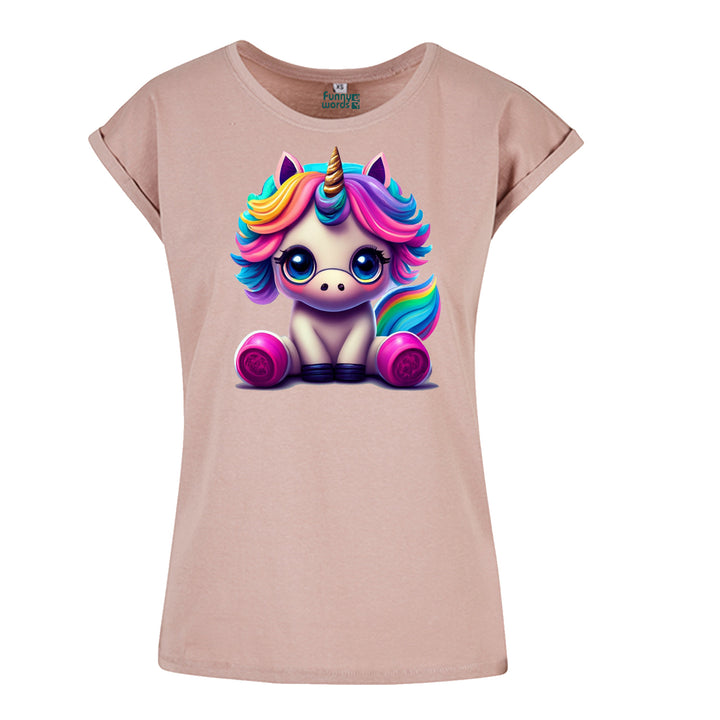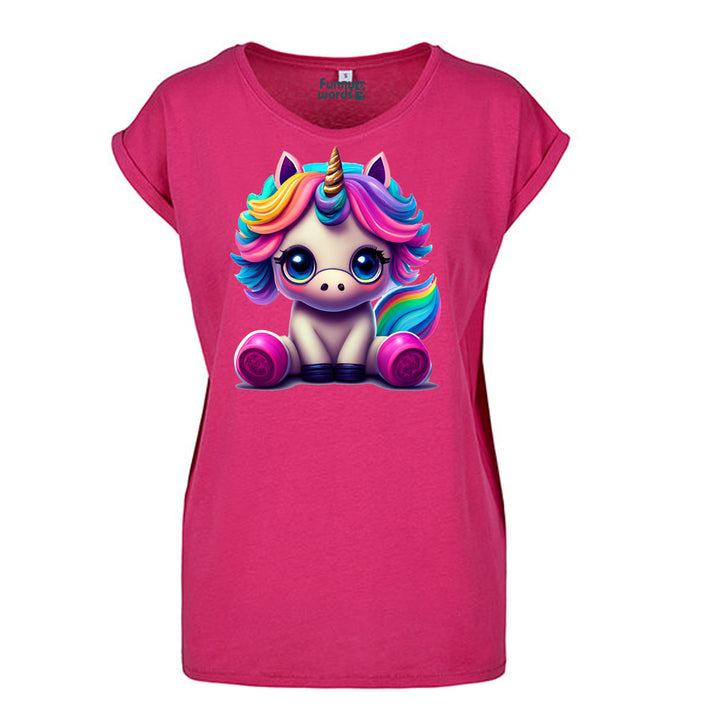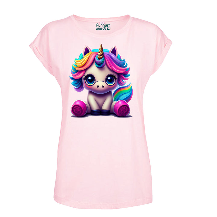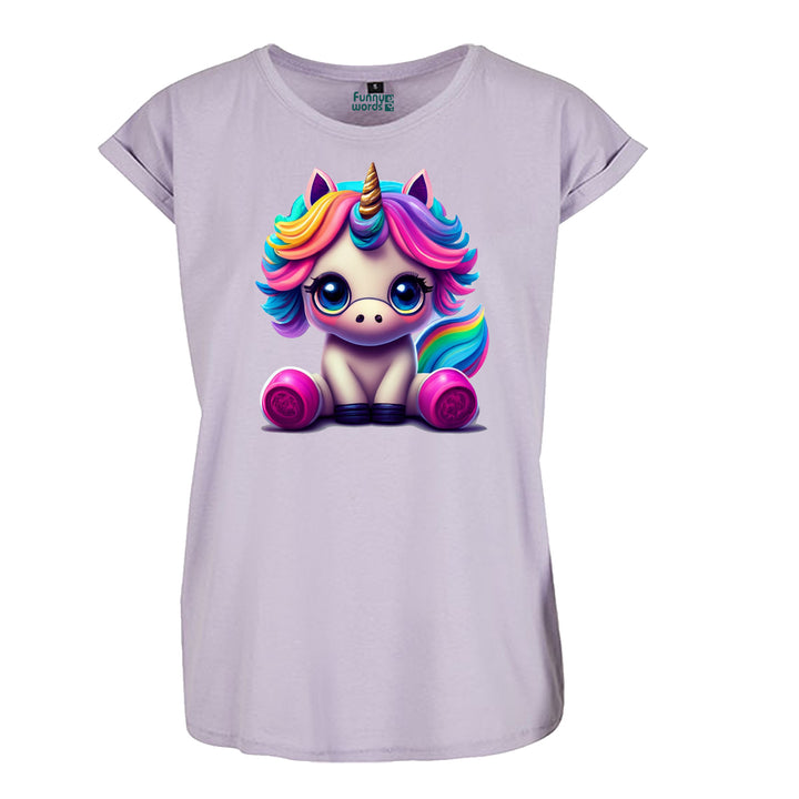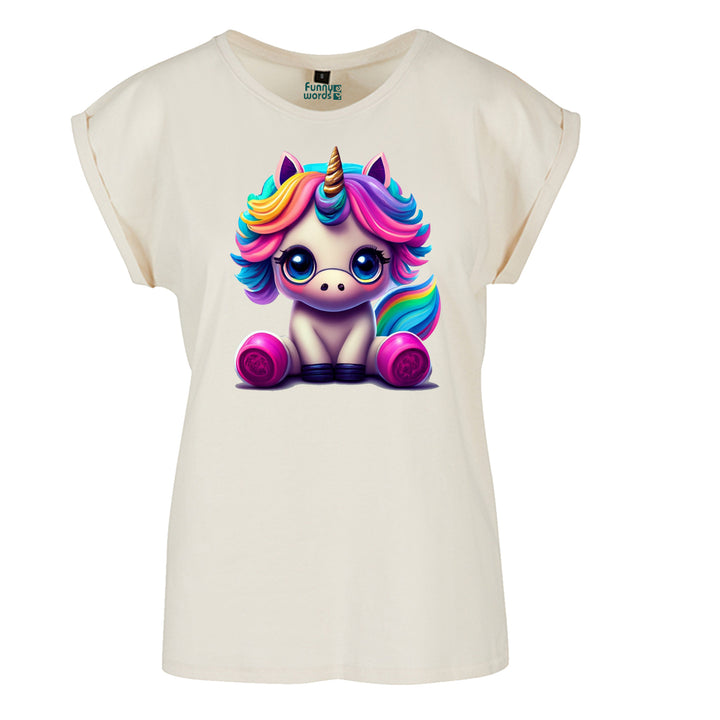 FUNNYWORDS® Unicorn Lulu Ladies Exended Shoulder Tee