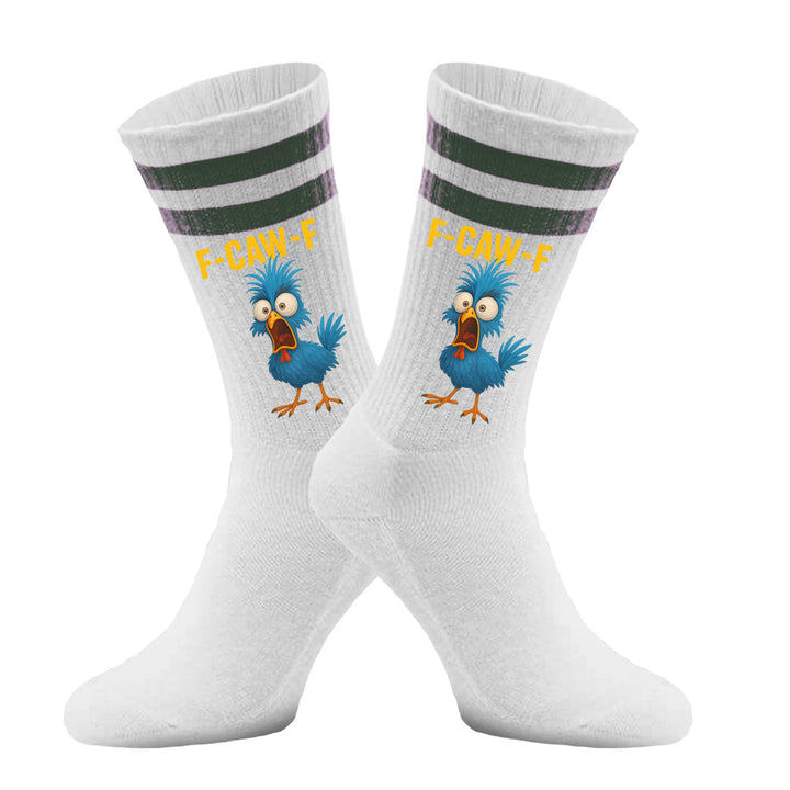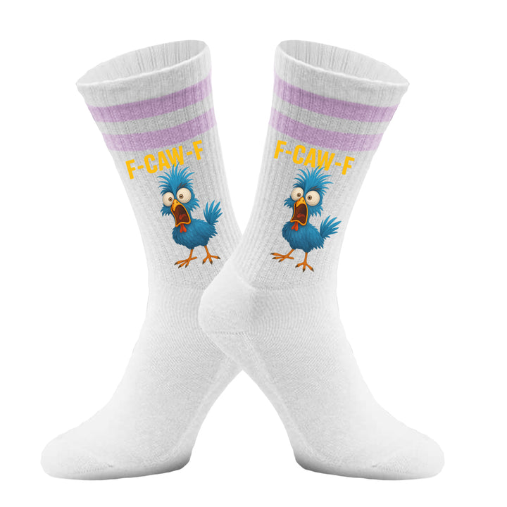 Unsere Tennissocken mit Spruch und Motiv sind nicht nur bequem, sondern auch langlebig, waschmaschinenfest und fair produziert. F-caw-f – mehr als nur ein Wort. Es ist ein Sockenzustand.