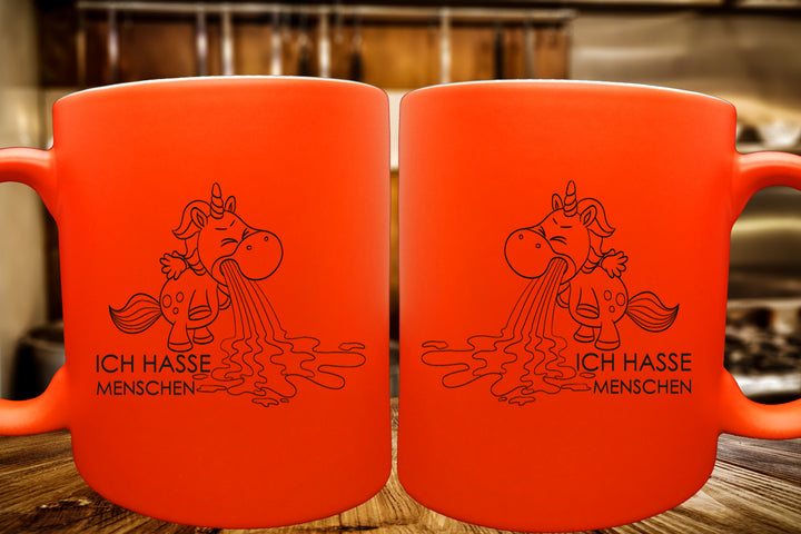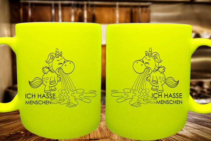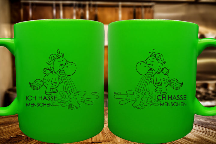 FUNNYWORDS® Ich hasse Menschen Einhorn Tasse - Fun - NEON - Tasse - Kaffeebecher