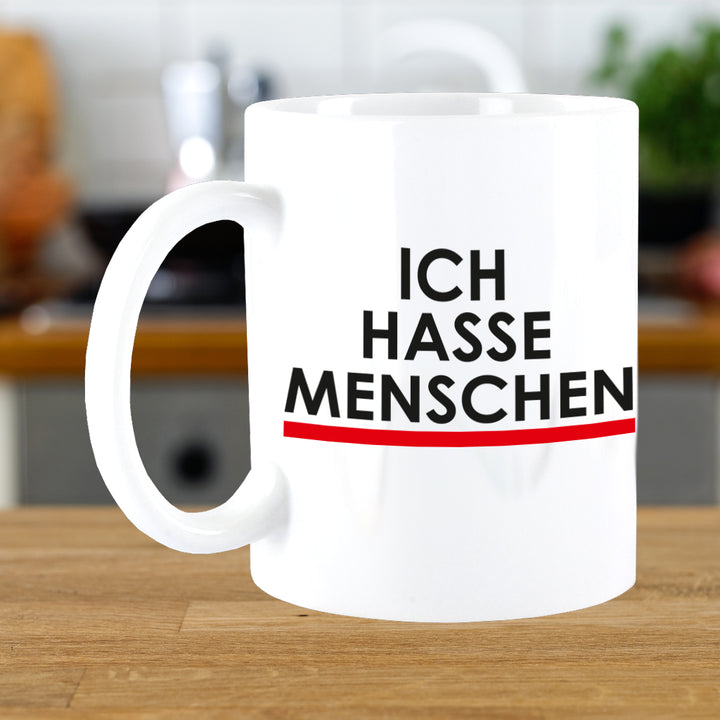 FUNNYWORDS® Rote Streifen Serie ICH HASSE MENSCHEN Kaffeebecher