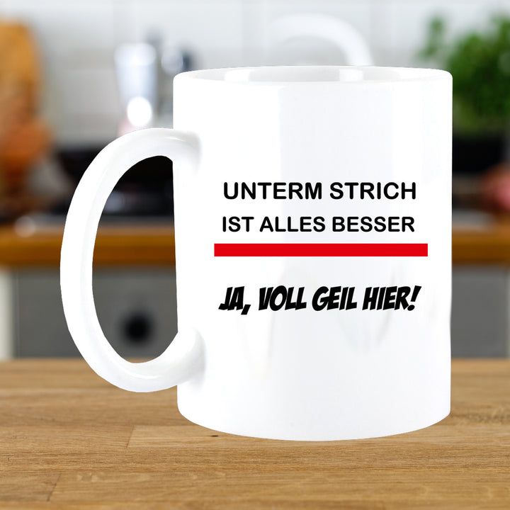 FUNNYWORDS® UNTERM STRICH IST ALLES BESSER Kaffeebecher