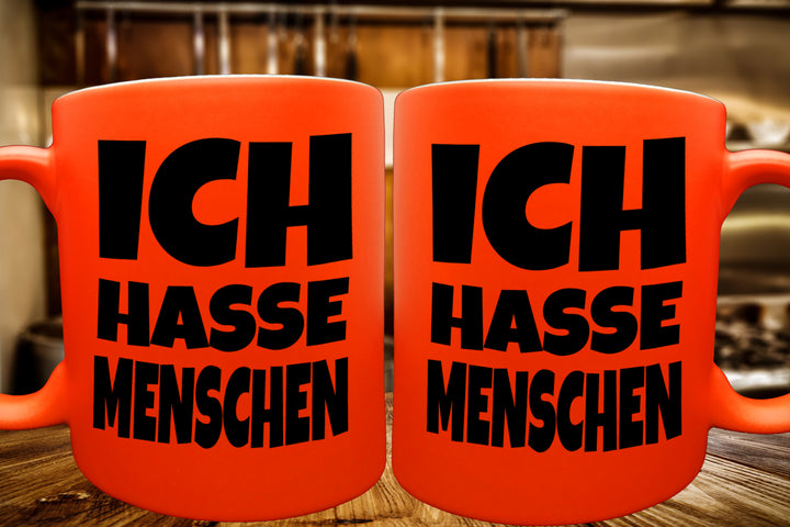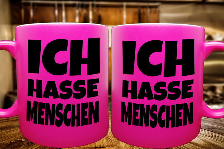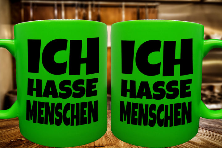 FUNNYWORDS® ICH HASSE MENSCHEN - Fun - NEON - Tasse - Kaffeebecher
