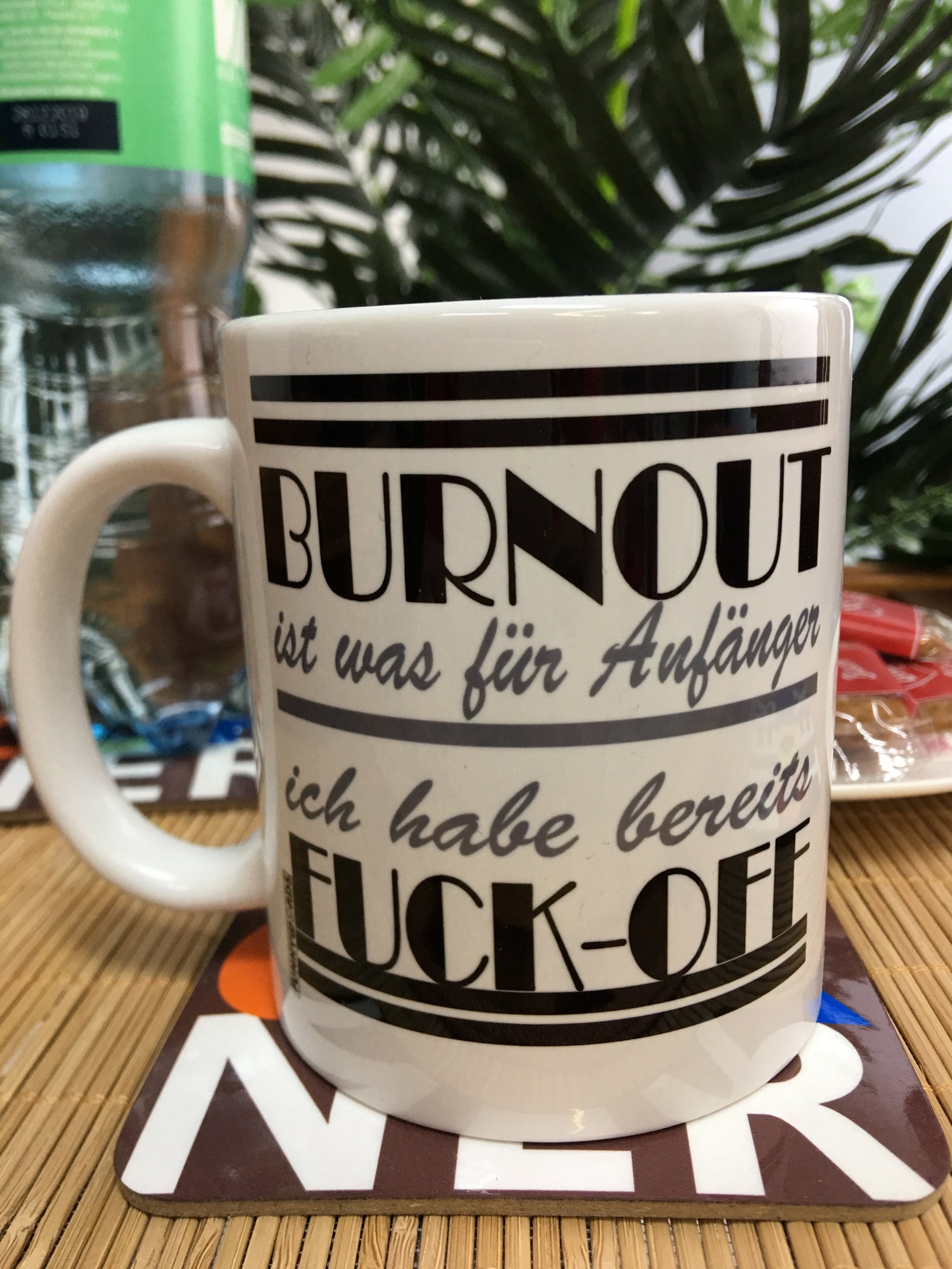 Bring dein Statement eindrucksvoll und ohne Worte zur Aussprache mit dem Kaffeebecher Burnout.