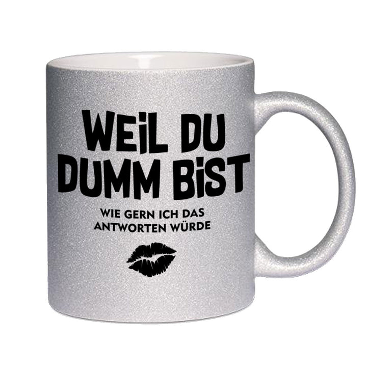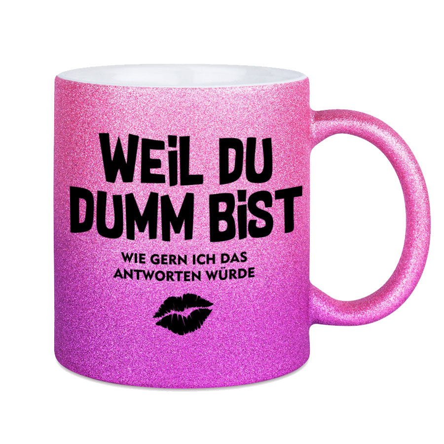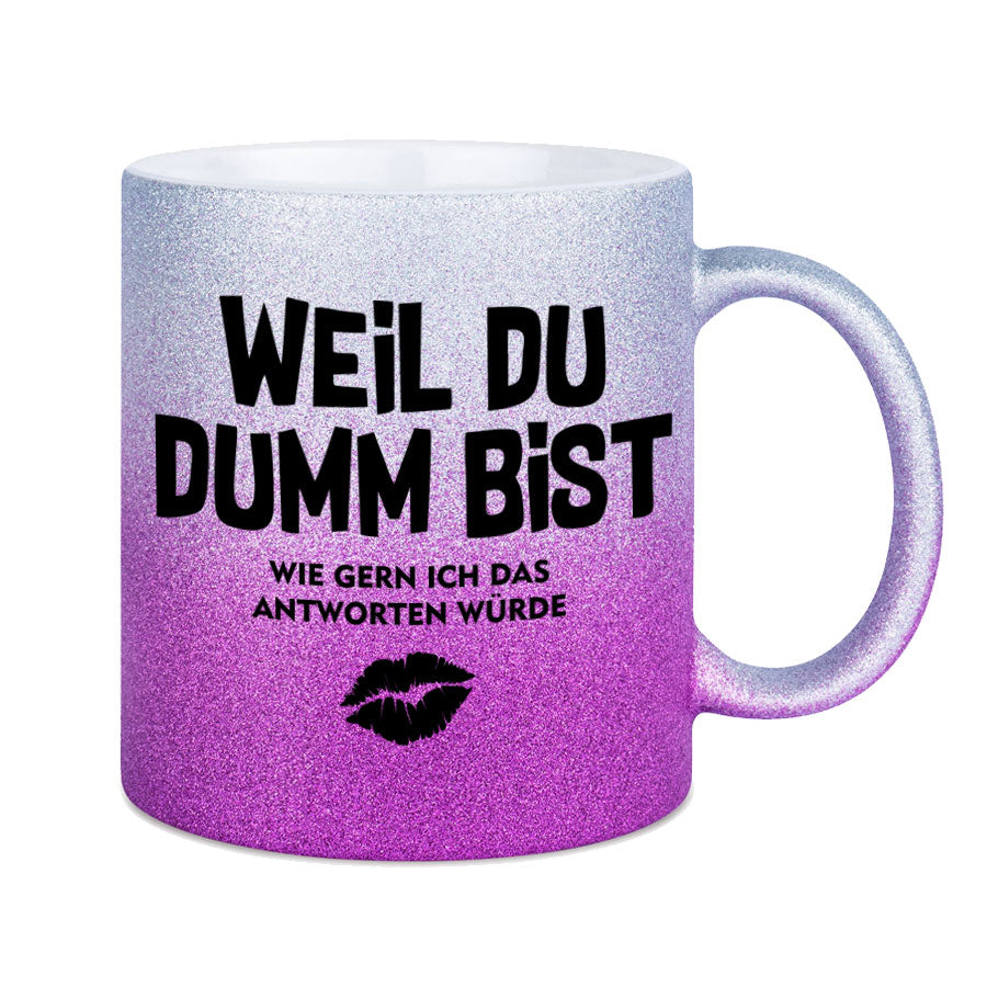 Glitzertasse Weil Du Dumm bist Glitzerkaffeetasse DIVA