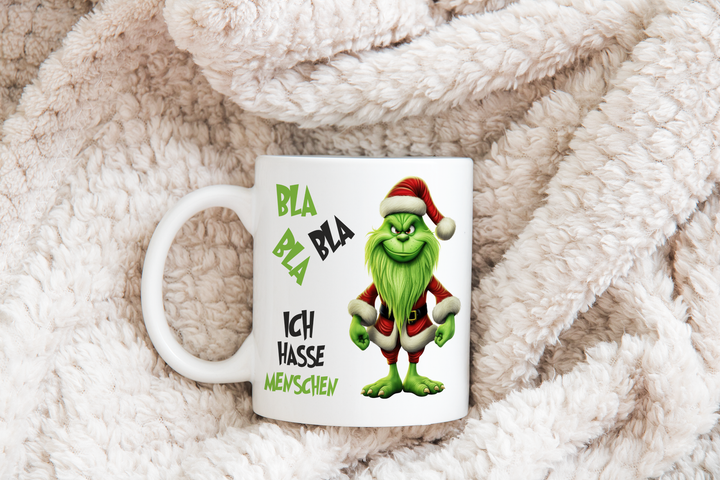 Green Santa - BLA BLA BLA - Ich hasse Menschen Kaffeebecher / Teetasse