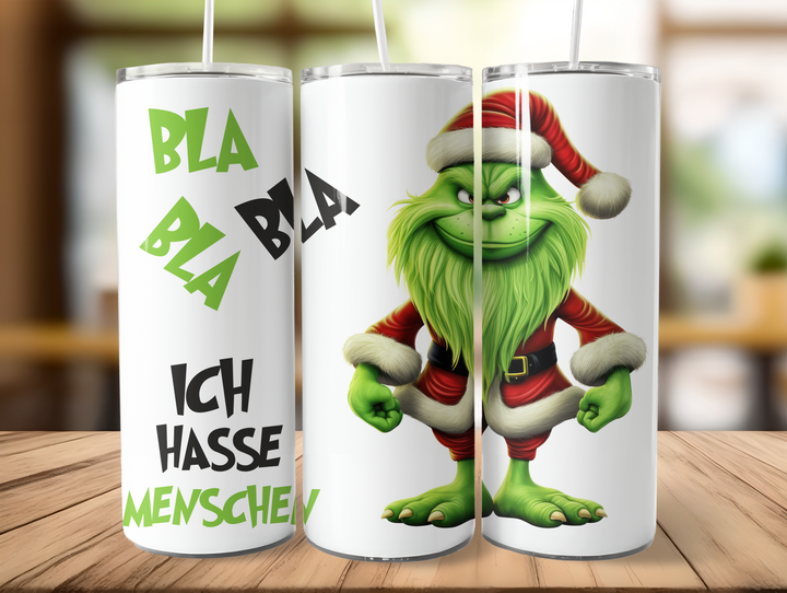 Green Santa BLA BLA BLA - ich hasse Menschen - Tumbler Edelstahl Trinkflasche