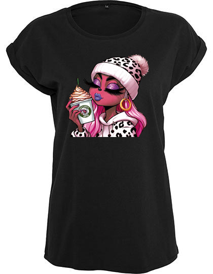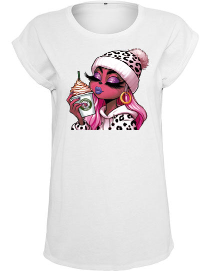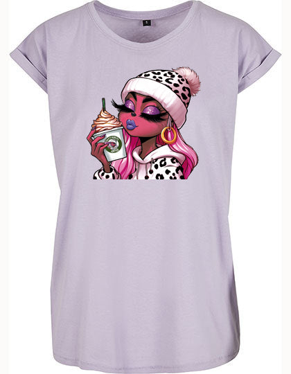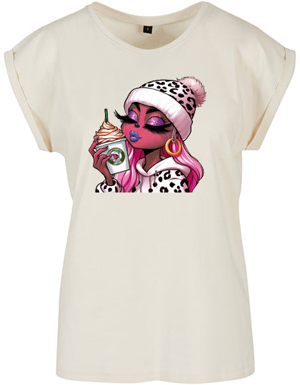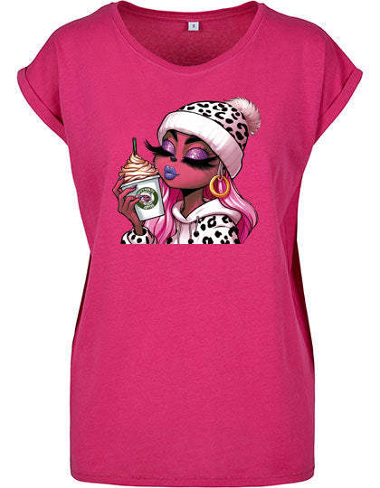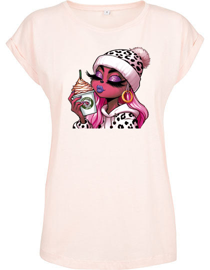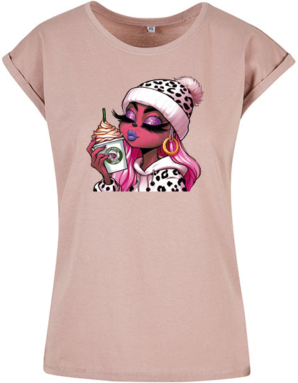 Ladies Freya Green "Pink Edition" Coffee Extended Shoulder T-Shirt