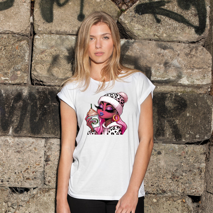 Tauche ein in die Welt des Lächelns mit dem FUNNYWORDS® Freya Green "Pink Edition" Ladies Extended Shoulder Tee. Dieses modisch lang geschnittene Shirt aus leichtem Jersey-Stoff vereint Stil und Komfort auf einzigartige Weise. Die Ärmel sind lässig überschnitten und verleihen dem Shirt eine entspannte Eleganz, während der umgeschlagene Saum für eine subtile, verspielte Note sorgt.