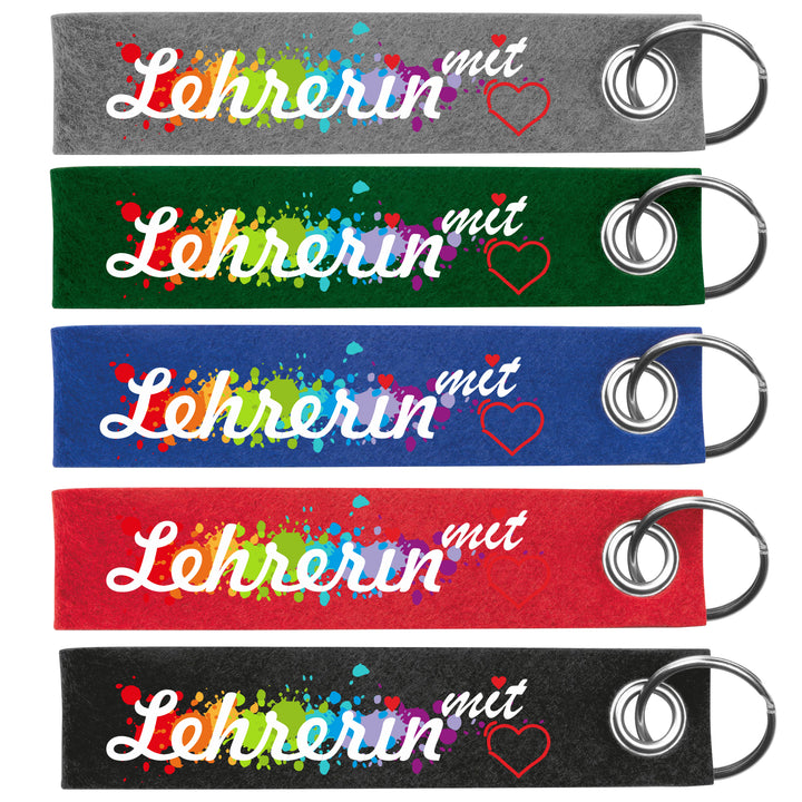 Lehrerin mit Herz Schlüsselanhänger aus Filz