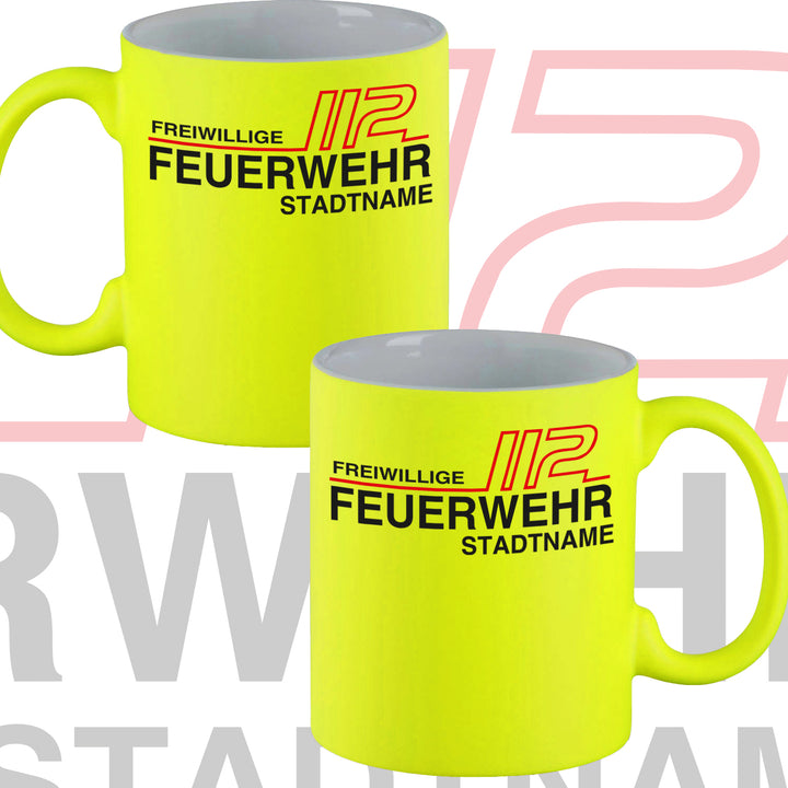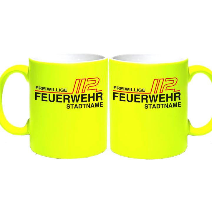 Neongelbe Feuerwehr Tasse FW1900 inkl. Wunschtext