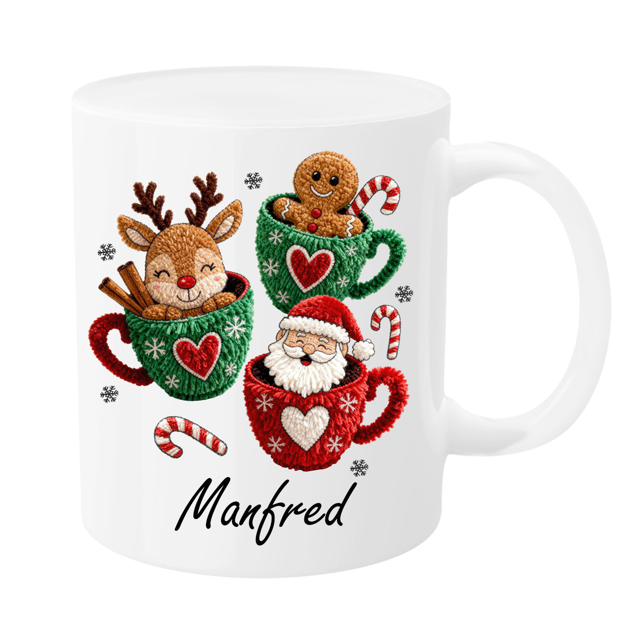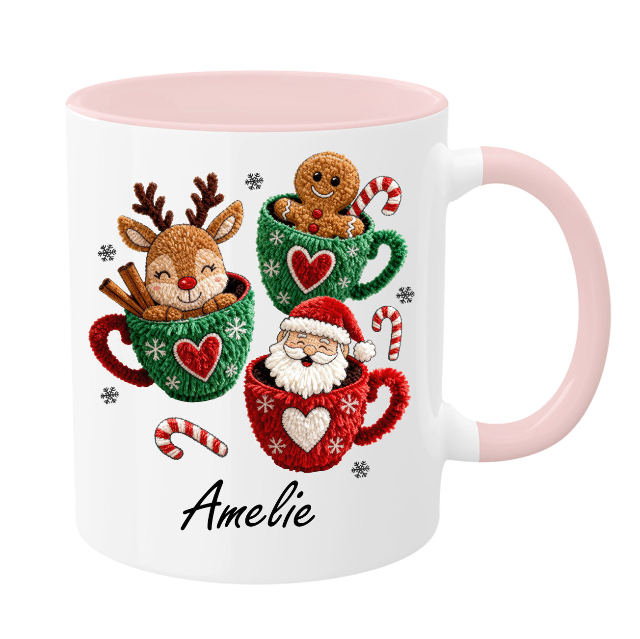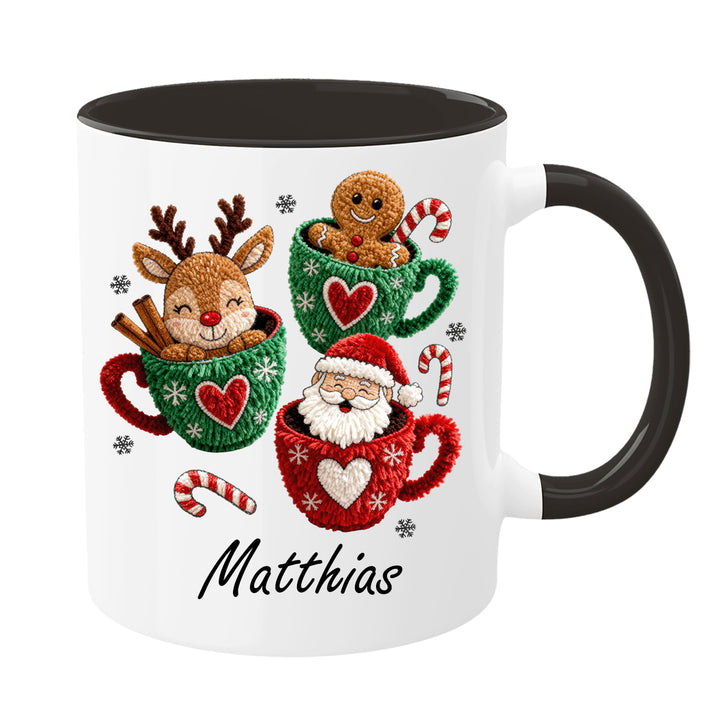 Personalisierte Weihnachtstasse mit Namen – Rentier, Lebkuchenmann & Weihnachtsmann | Weihnachtsbecher in verschiedenen Farben | Geschenkidee zu Weihnachten
