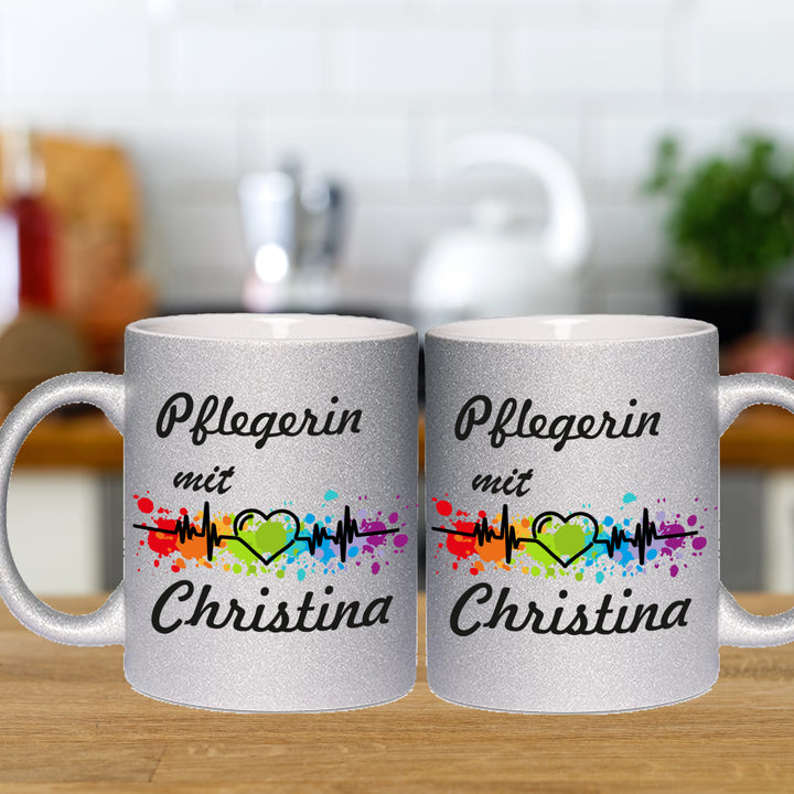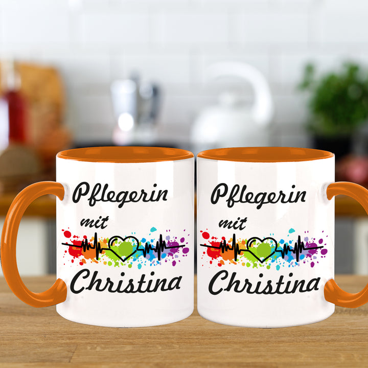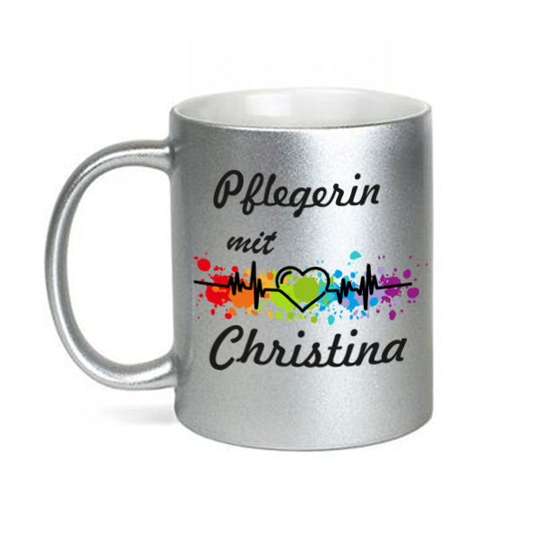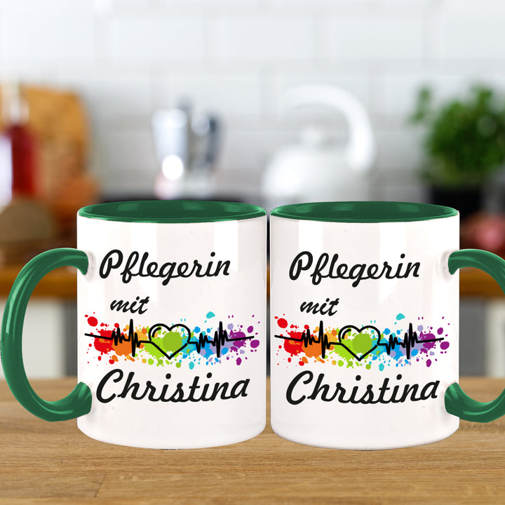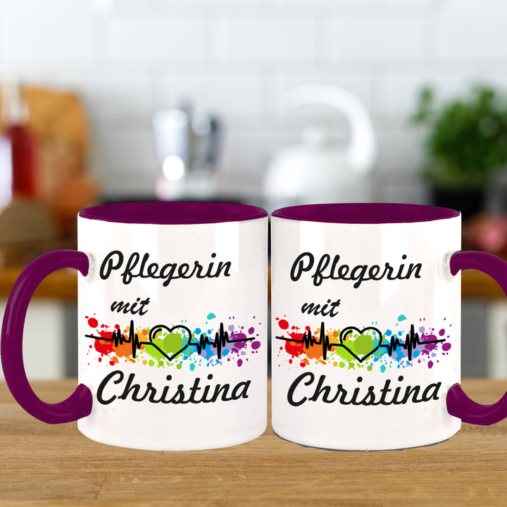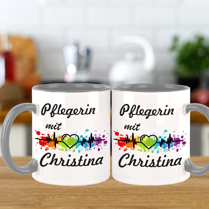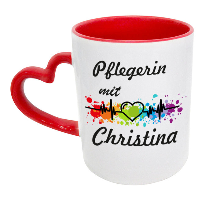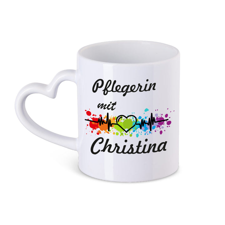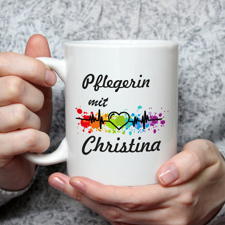 Pflegerin mit Herz Kaffeebecher Teetasse mit Namen personalisiert